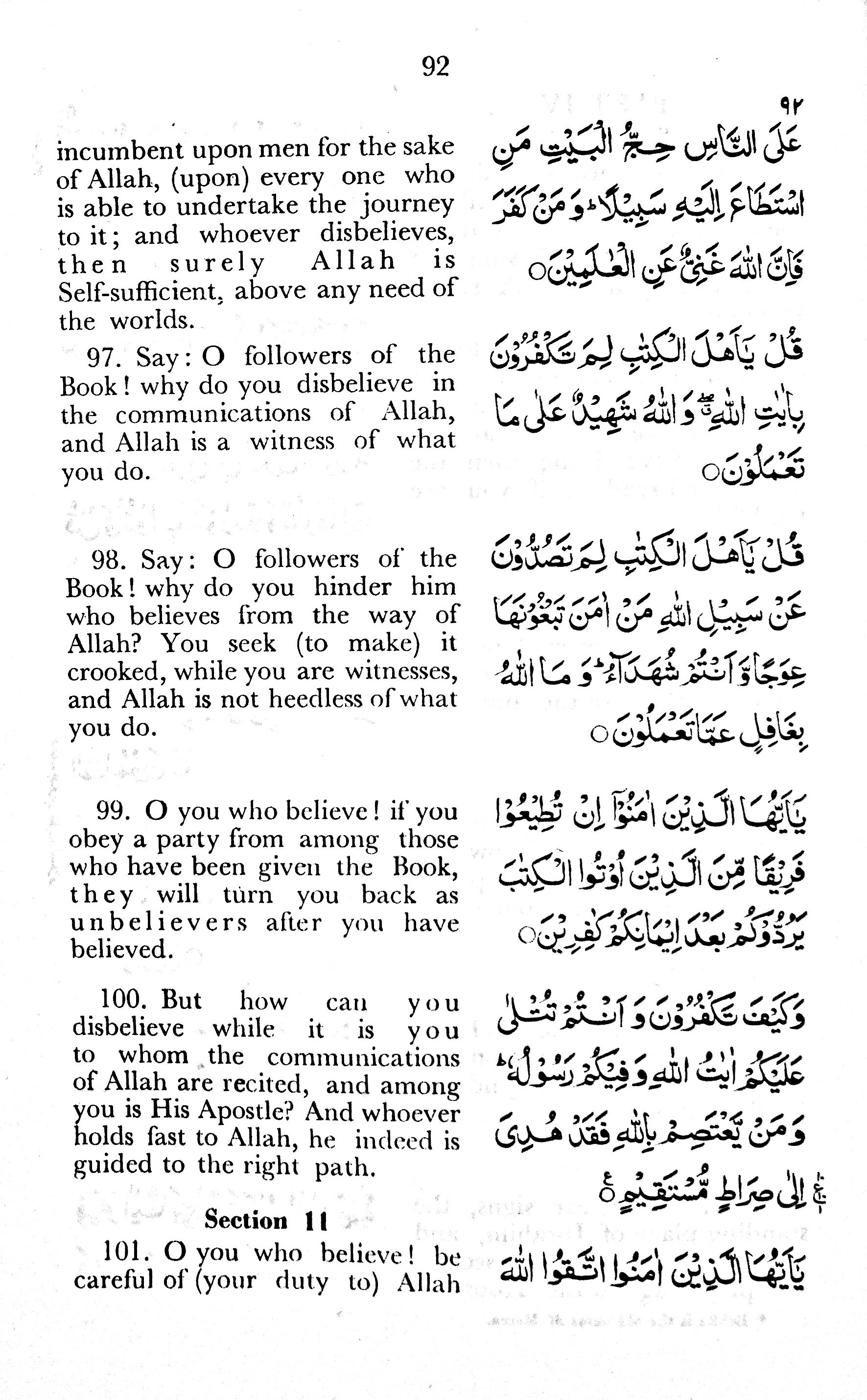 100. But how can you disbelieve while it is you to whom the communications of Allah are recited, and among you is His Apostle? And whoever holds fast to Allah, he indeed is guided to the right path.