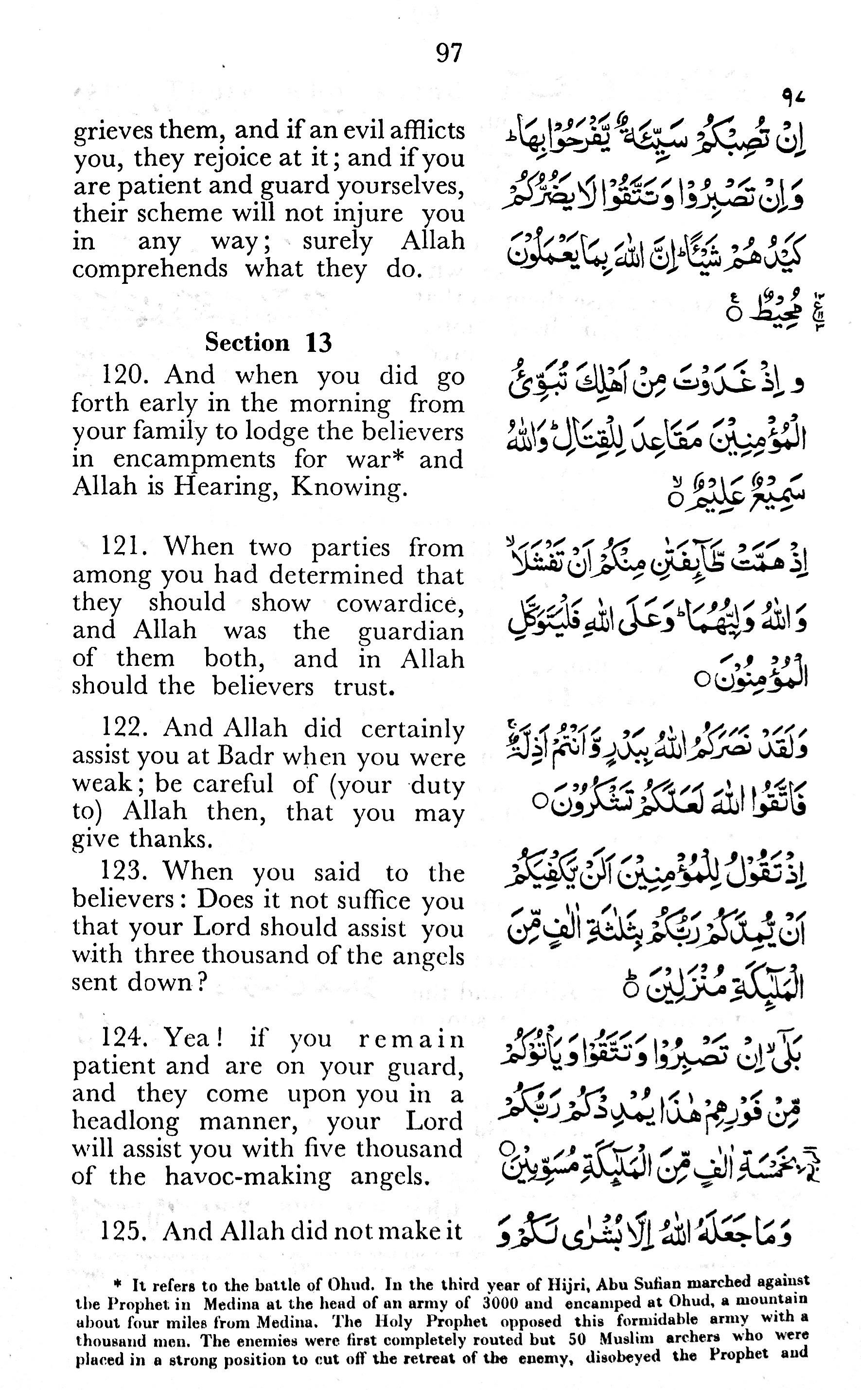 124. Yea! if you remain patient and are on your guard, and they come upon you in a headlong manner, your Lord will assist you with five thousand of the havoc-making angels.