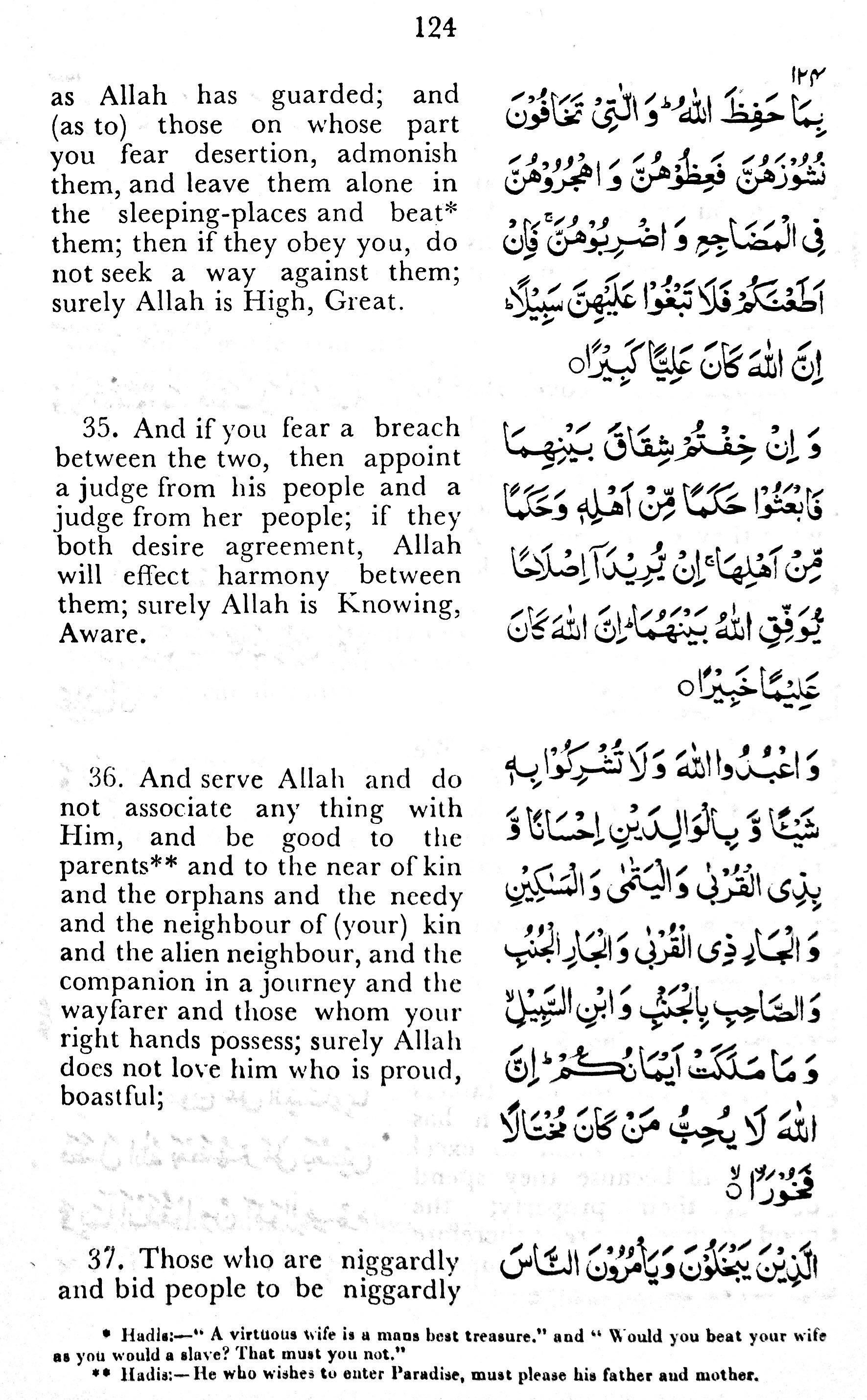 * Hadis:— “A virtuous wife is a mans best treasure," and “ Would you beat your wife as you would a slave? That must you not.”