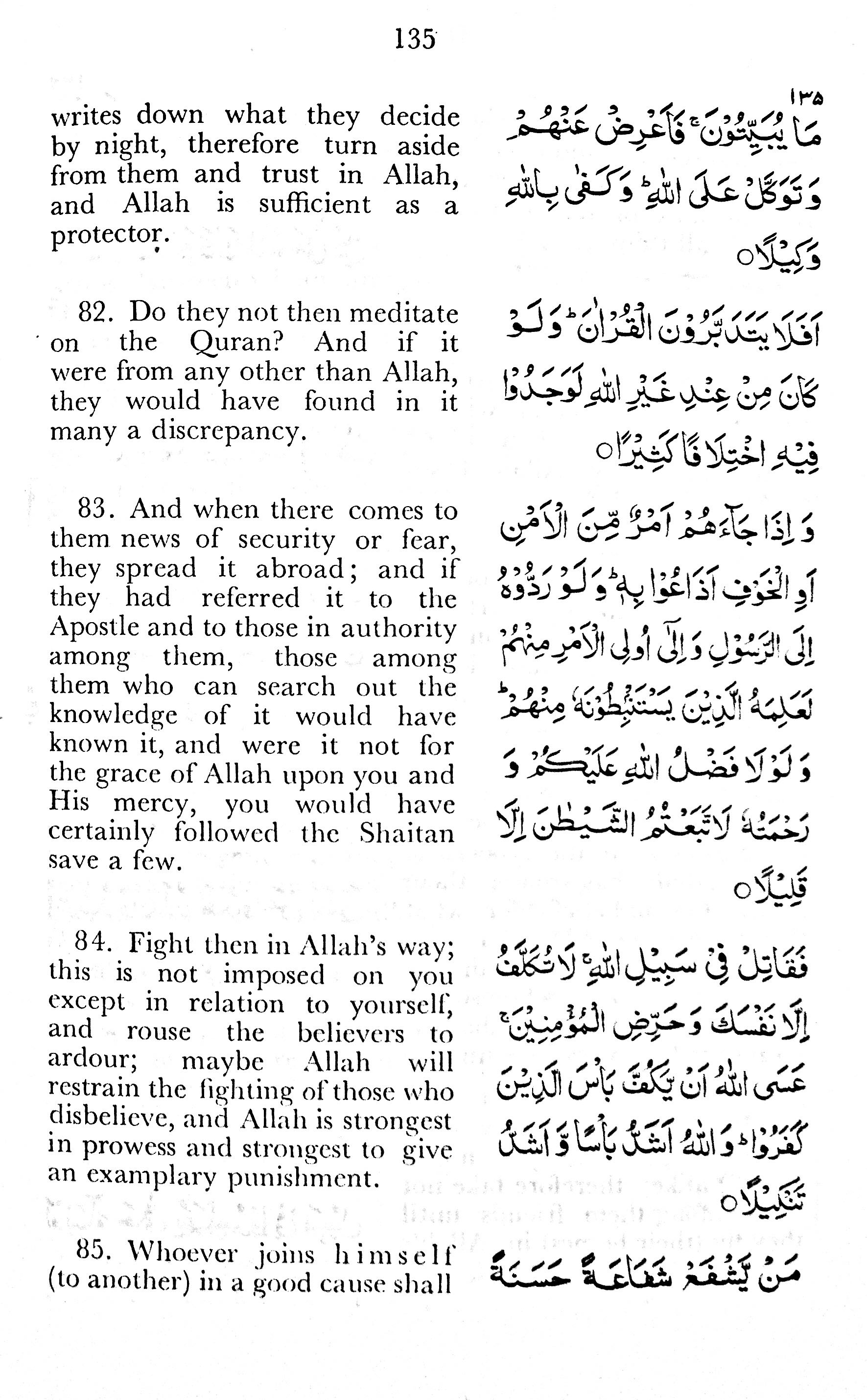 82. Do they not then meditate on the Quran? And if it were from any other than Allah, they would have found in it many a discrepancy.