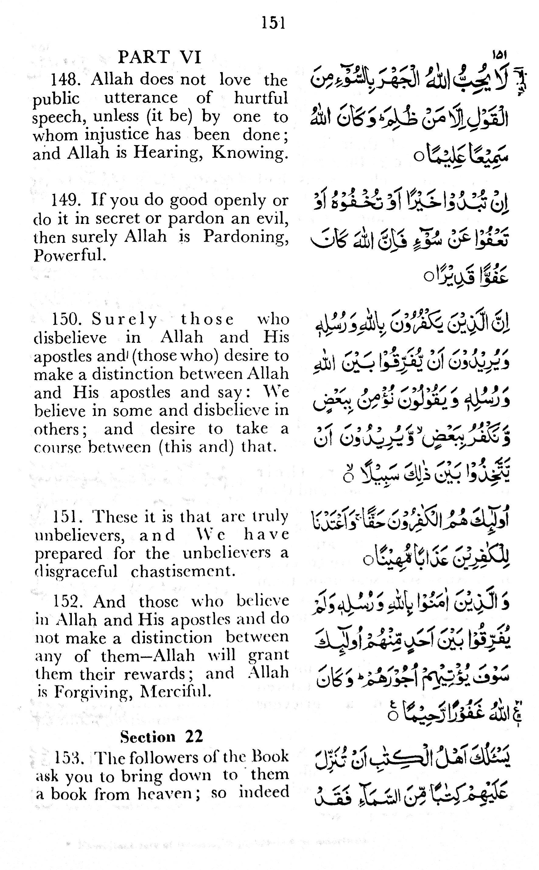 149. If you do good openly or do it in secret or pardon an evil, then surely Allah is Pardoning, Powerful.