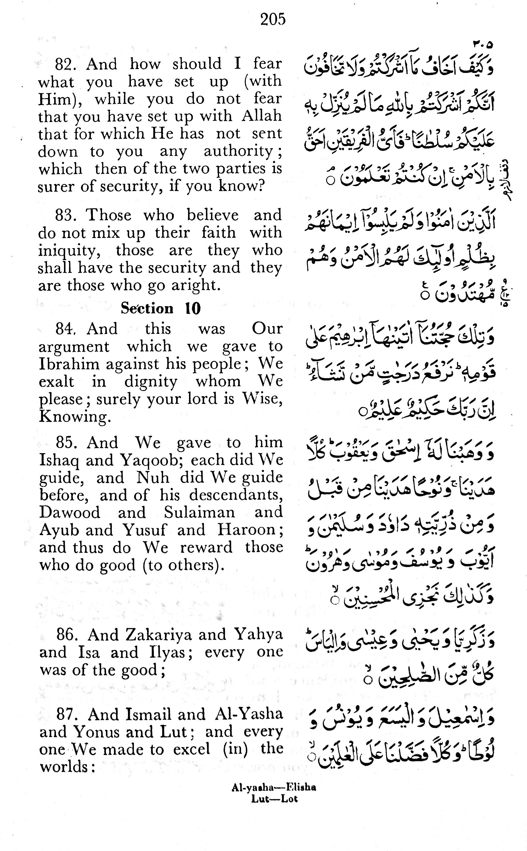 86. And Zakariya and Yahya and Isa and Ilyas; every one was of the good;