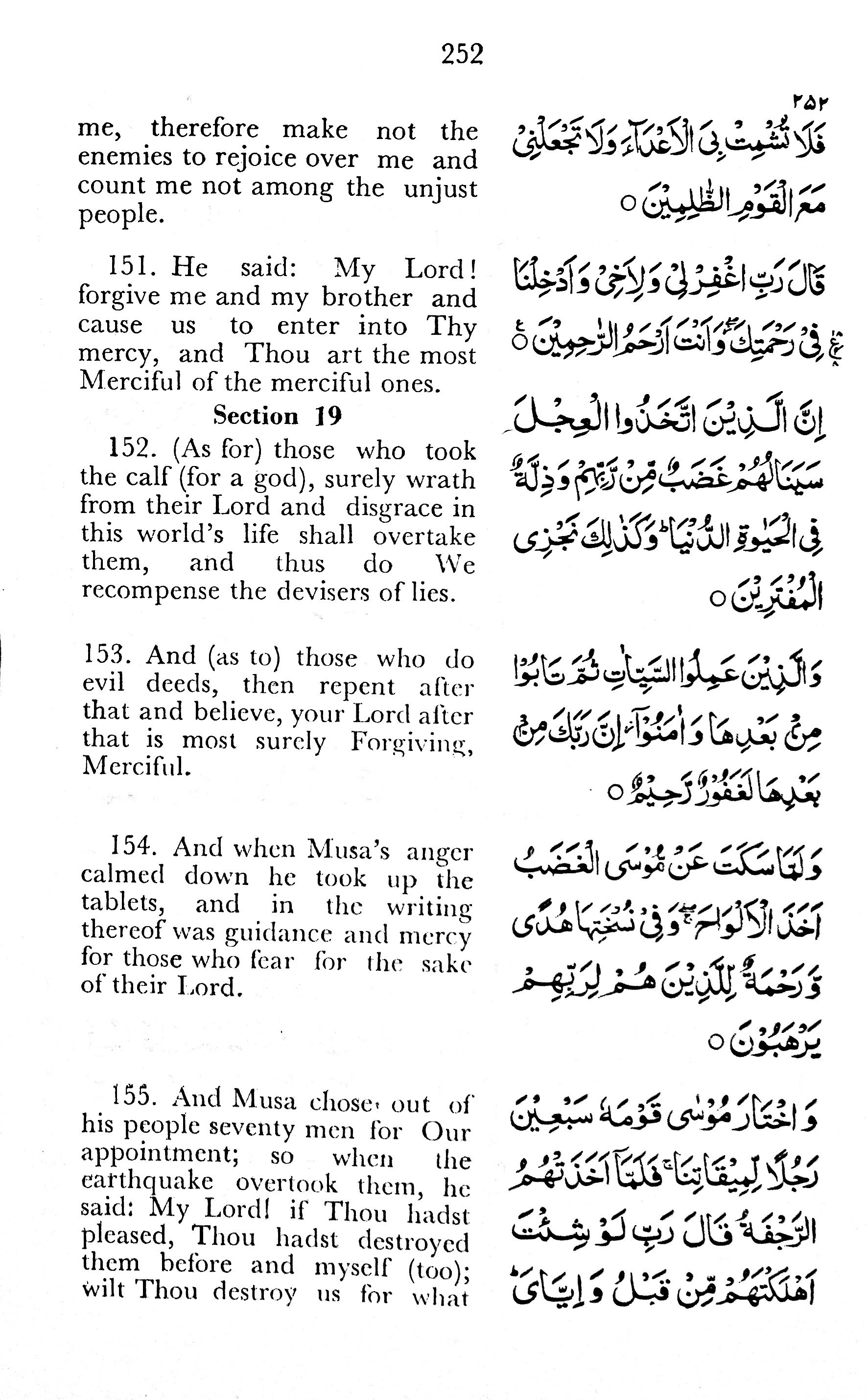 154. And when Musa’s anger calmed down he took up the tablets, and in the writing thereof was guidance and mercy for those who fear for die sake of their Lord.