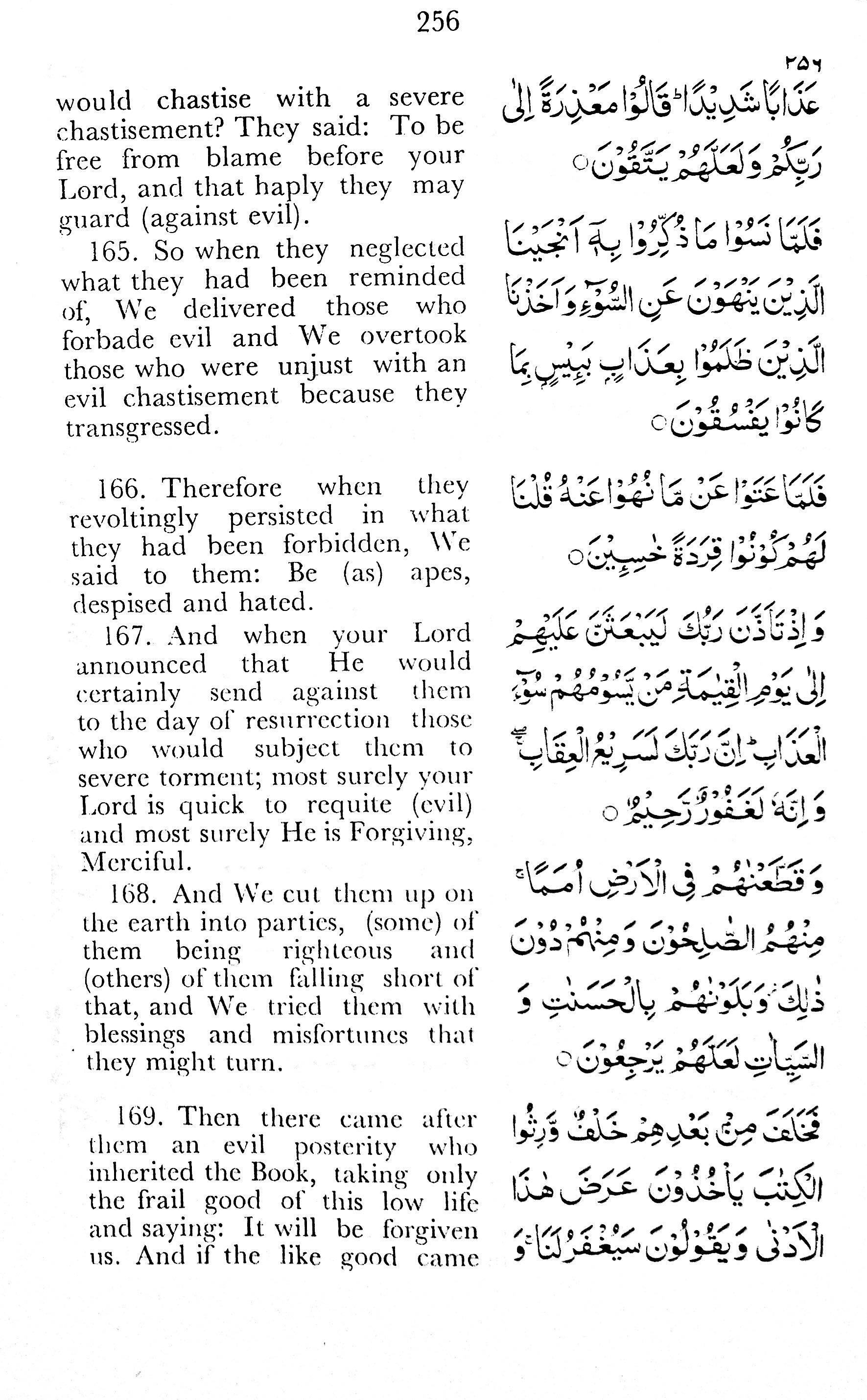166. Therefore when they revoltingly persisted in what. they had been forbidden, We said to them: Be (as) apes, despised and hated.