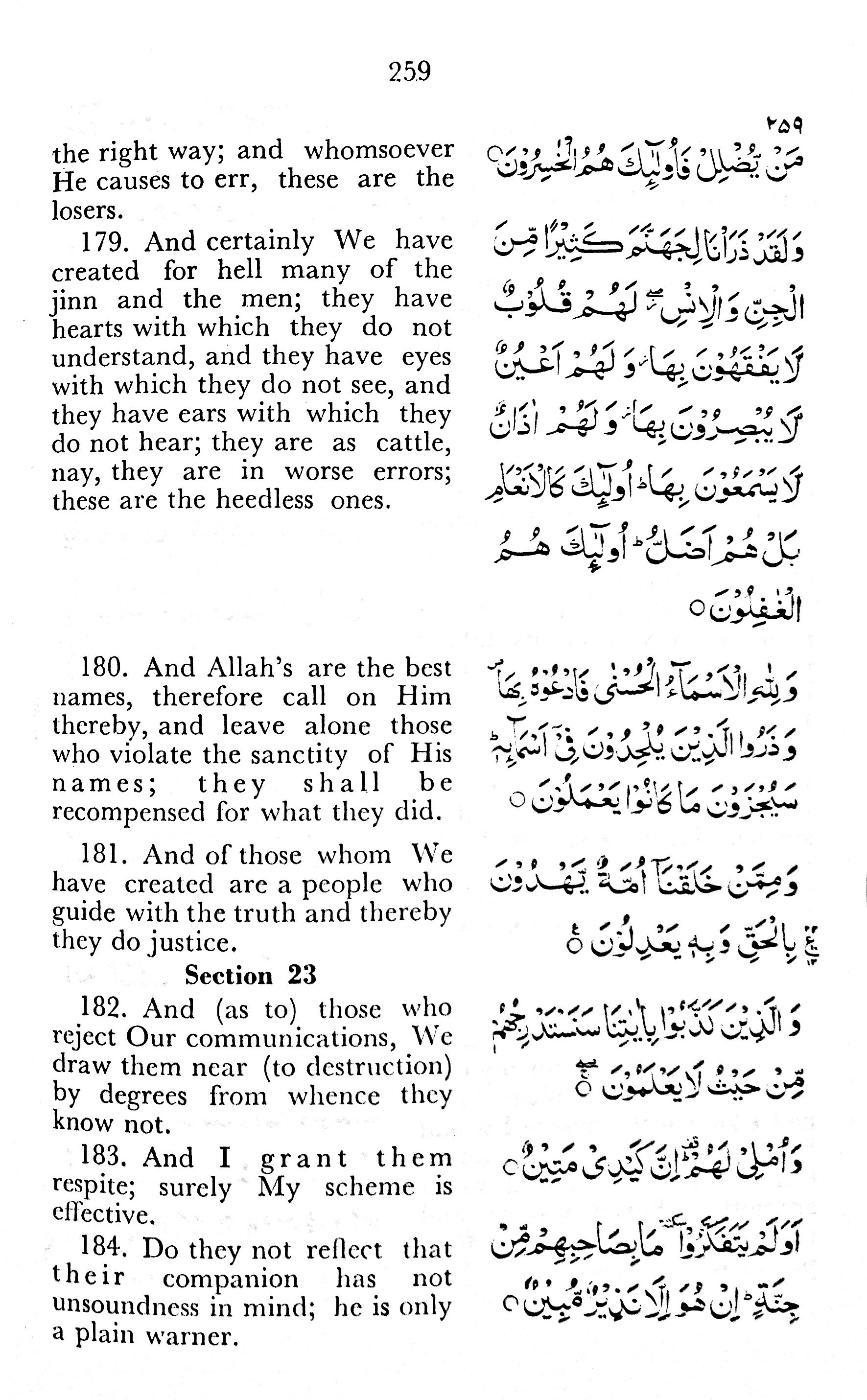 179. And certainly We have created for hell many of the jinn and the men; they have hearts with which they do not understand, and they have eyes with which they do not see, and they have ears with which they do not hear; they are as cattle, nay, they are in worse errors; these are the heedless ones.