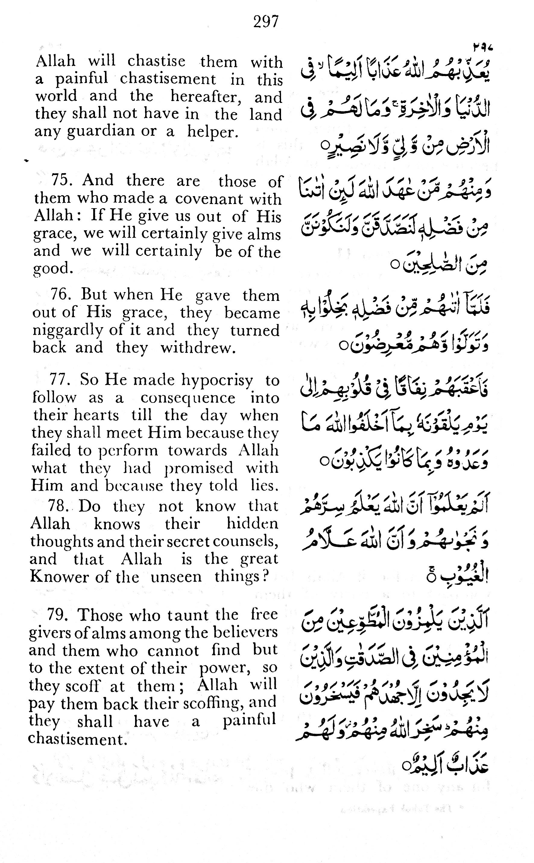 75. And there are those of them who made a covenant with Allah: If He give us out of His grace, we will certainly give alms and we will certainly be of the good.