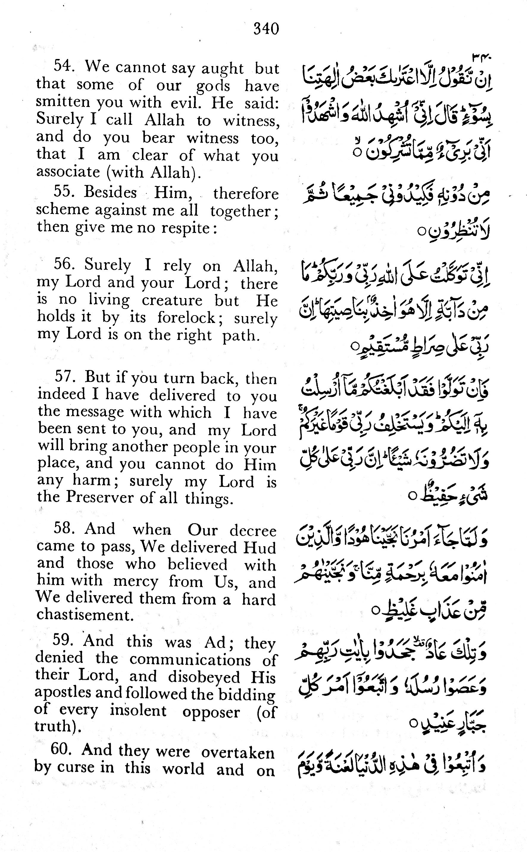 56. Surely I rely on Allah, my Lord and your Lord; there is no living creature but He holds it by its forelock; surely my Lord is on the right path.