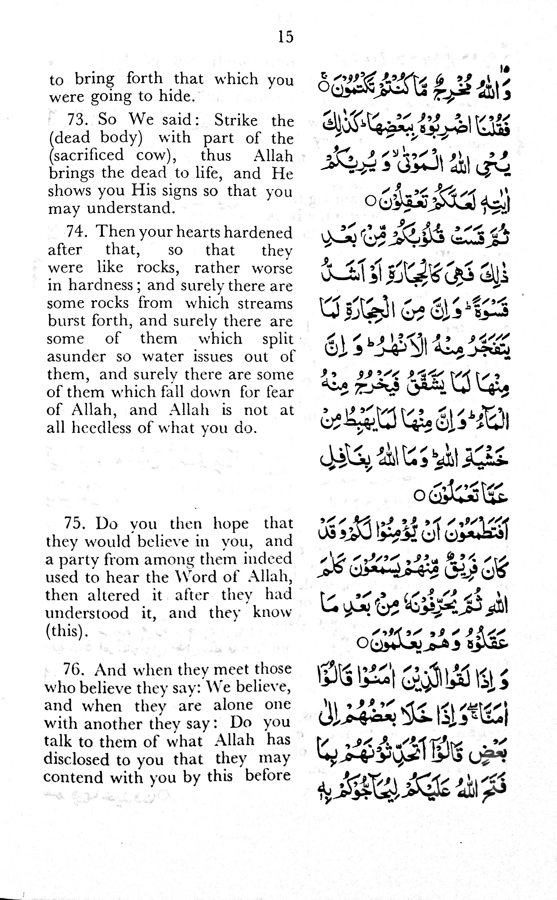 75. Do you then hope that they would believe in you, and a party from among them indeed used to hear the Word of Allah, then altered it after they had understood it, and they know (this).
