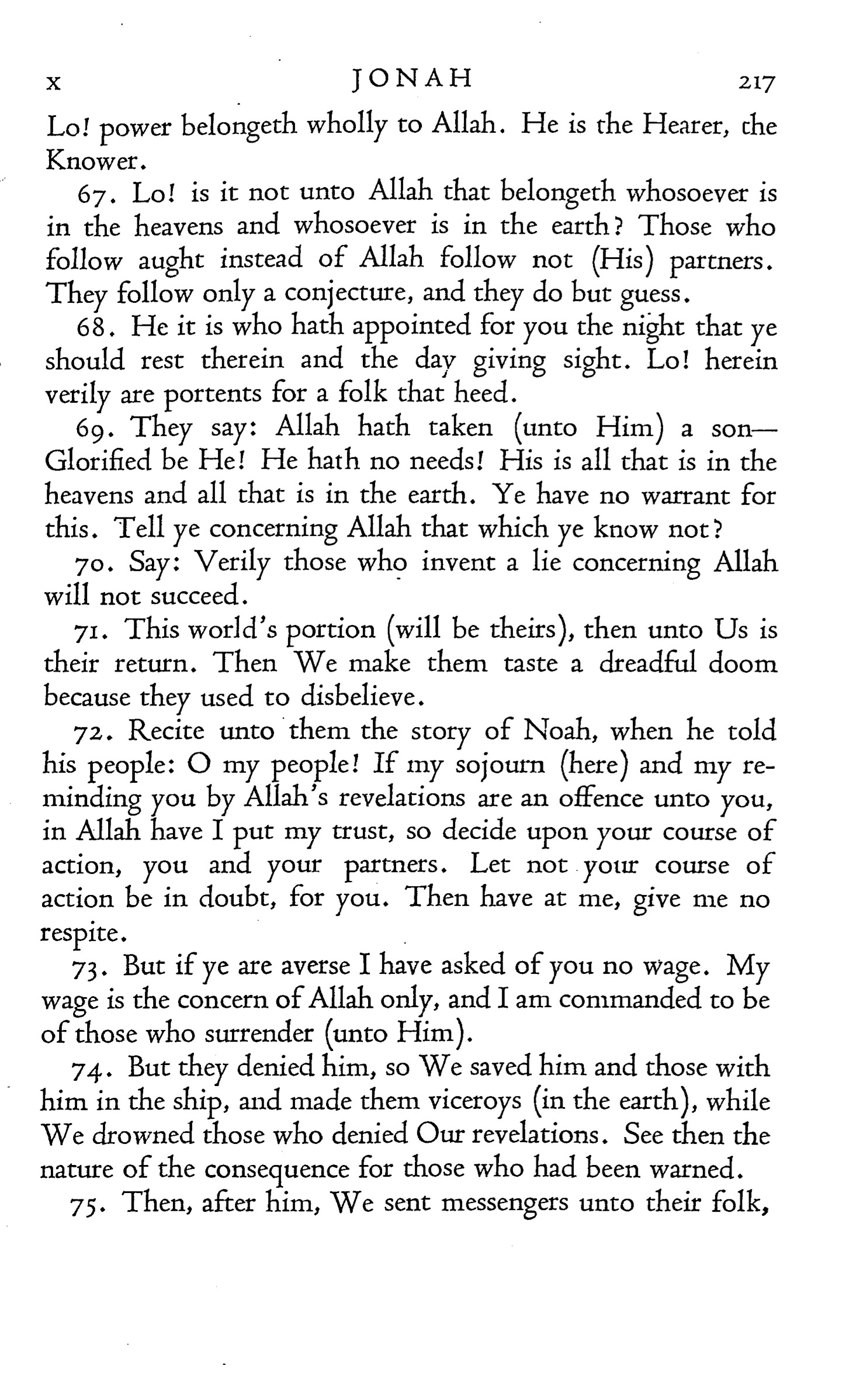 73. But if ye are averse I have asked of you no wage. My wage is the concern of Allah only, and I am commanded to be of those who surrender (unto Him).