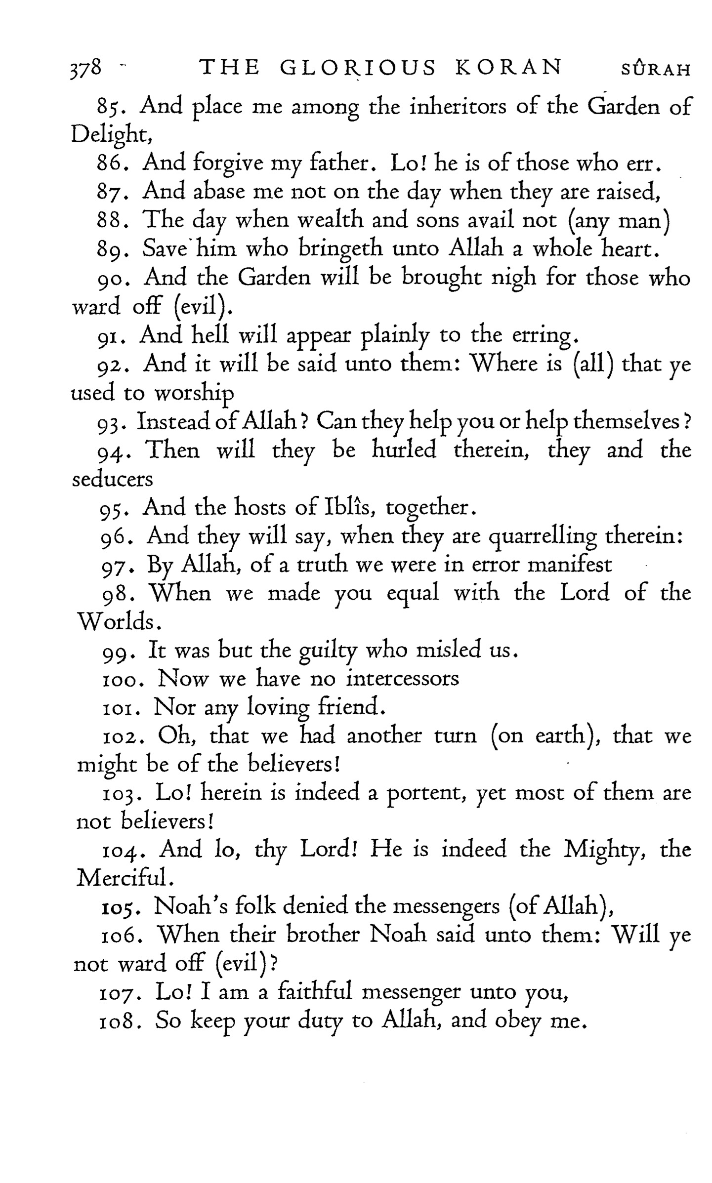 106. When their brother Noah said unto them: Will ye not ward off (evil)?