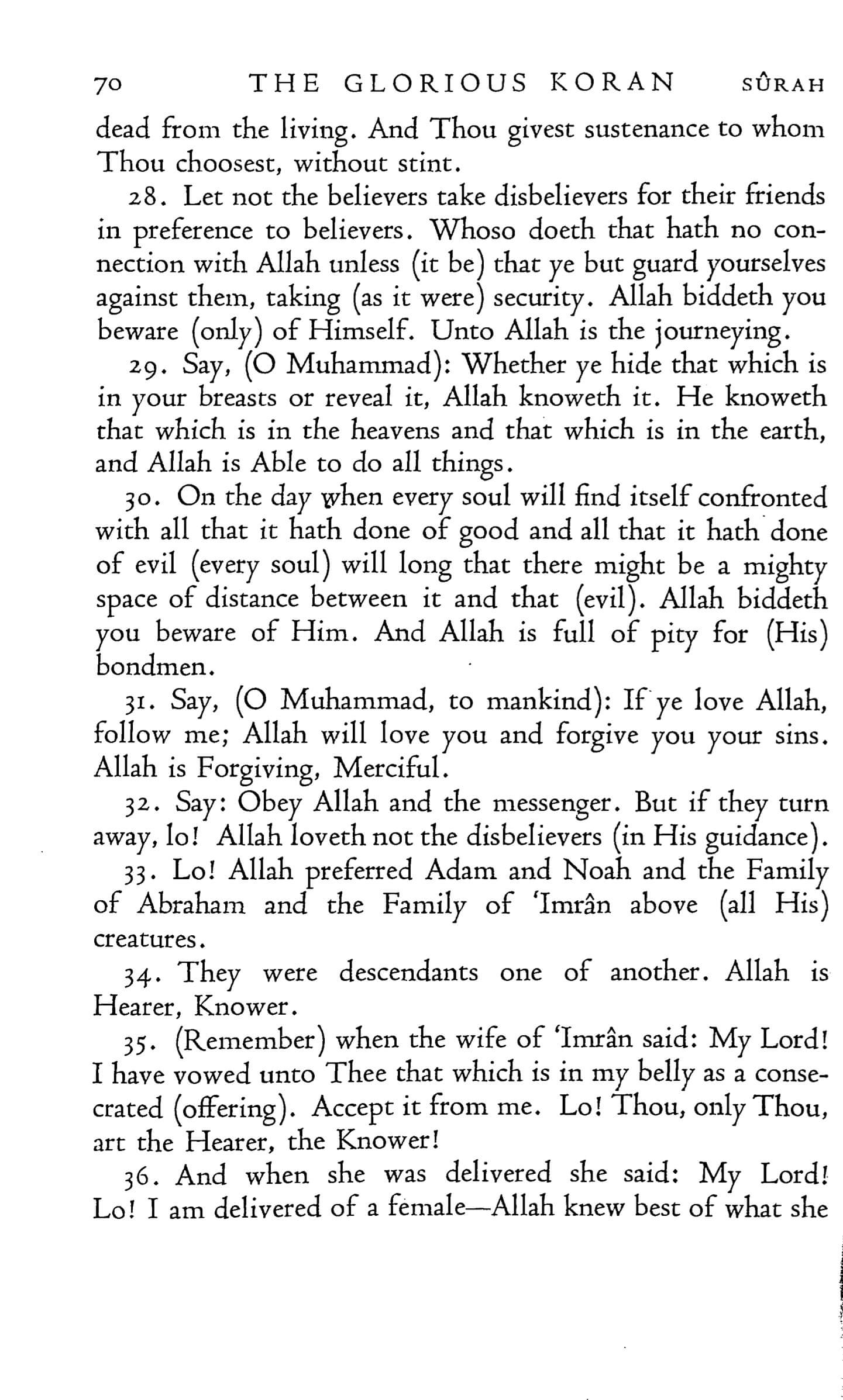 33. Lo! Allah preferred Adam and Noah and the Family of Abraham and the Family of ‘Imrân above (all His) creatures.
