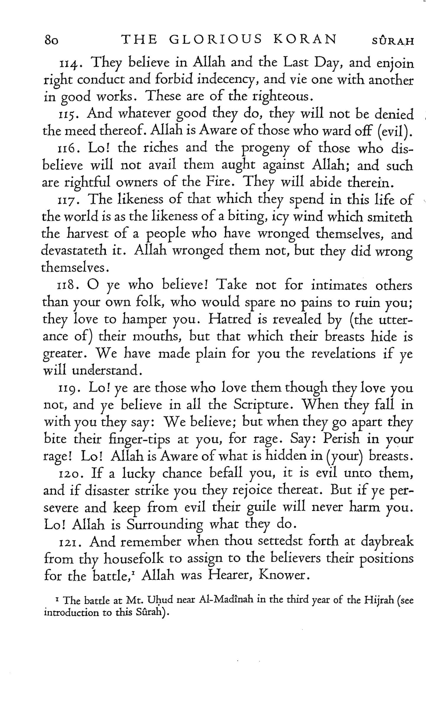 1 The battle at Mt. Uḥud near Al-Madînah in the third year of the Hijrah (see introduction to this Sûrah).