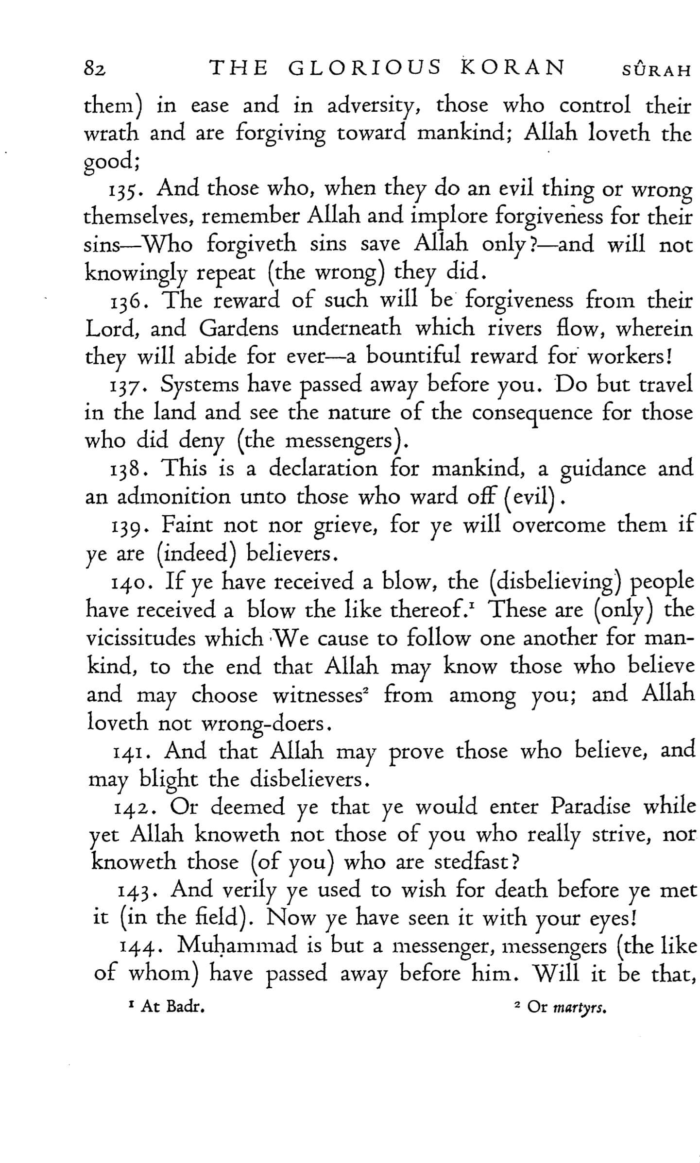 144. Muhammad is but a messenger, messengers (the like of whom) have passed away before him. Will it be that,