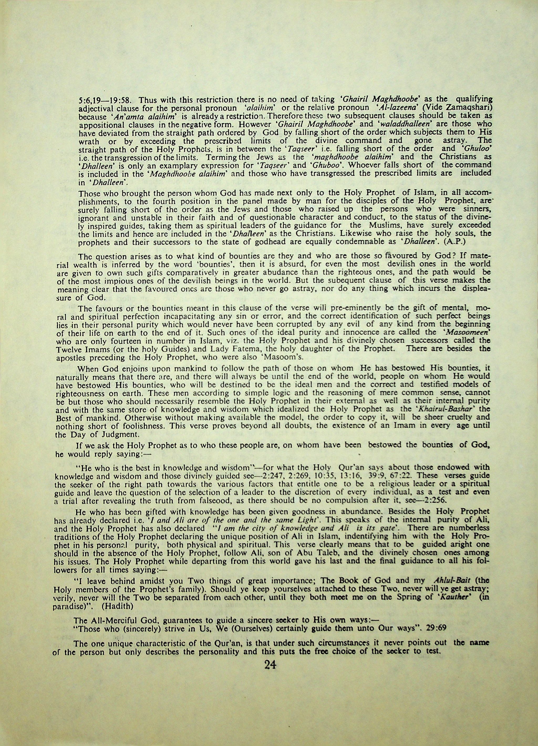 S. V. Mir Ahmed Ali, The Holy Qur’an: with English translation of the Arabic text and commentary according to the version of the Holy Ahlul-Bait: with special notes from Ayatullah Agha Haji Mirza Mahdi Pooya Yazdi on the philosophic aspects of some of the verses,