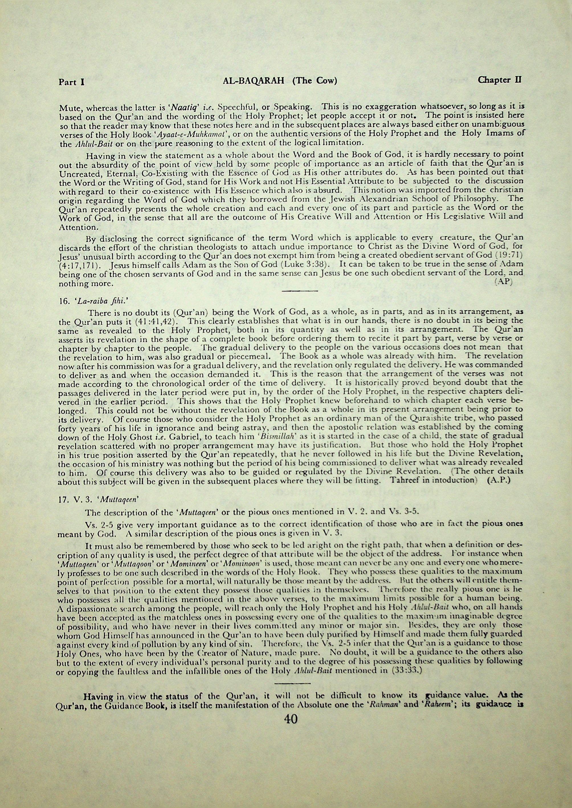 S. V. Mir Ahmed Ali, The Holy Qur’an: with English translation of the Arabic text and commentary according to the version of the Holy Ahlul-Bait: with special notes from Ayatullah Agha Haji Mirza Mahdi Pooya Yazdi on the philosophic aspects of some of the verses,