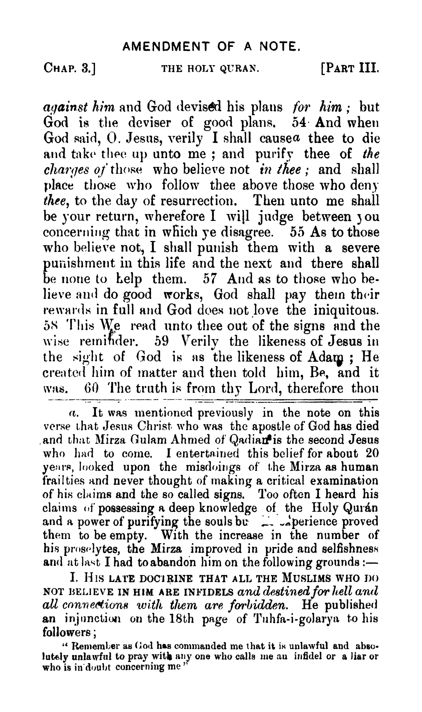 Mohammad Khan, The Holy Qurán. With Short Notes. Based on the Holy Quran, or the Authentic Traditions of the Prophet, or the Old and New Testaments or Scientifics Truths. All fictitious romance, questionable history, and disputed theories have been carefully avoided,