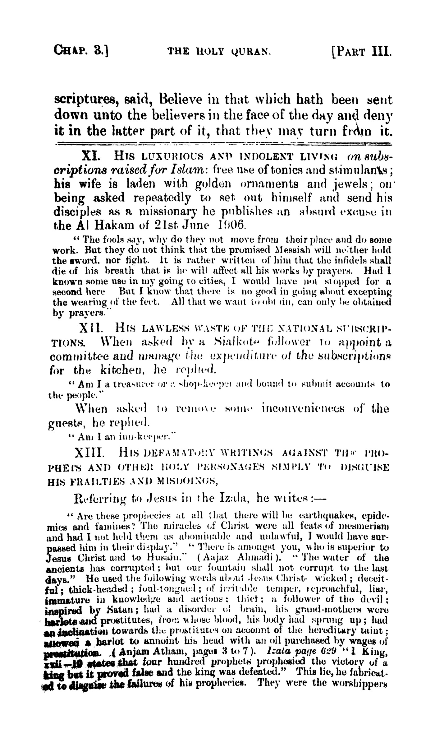 Mohammad Khan, The Holy Qurán. With Short Notes. Based on the Holy Quran, or the Authentic Traditions of the Prophet, or the Old and New Testaments or Scientifics Truths. All fictitious romance, questionable history, and disputed theories have been carefully avoided,