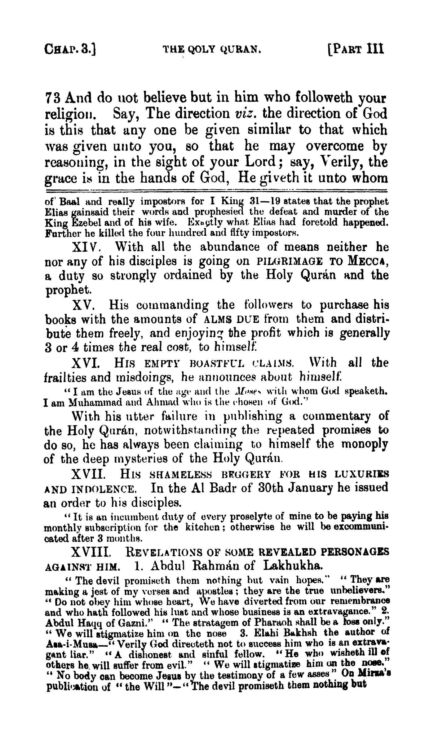 Mohammad Khan, The Holy Qurán. With Short Notes. Based on the Holy Quran, or the Authentic Traditions of the Prophet, or the Old and New Testaments or Scientifics Truths. All fictitious romance, questionable history, and disputed theories have been carefully avoided,