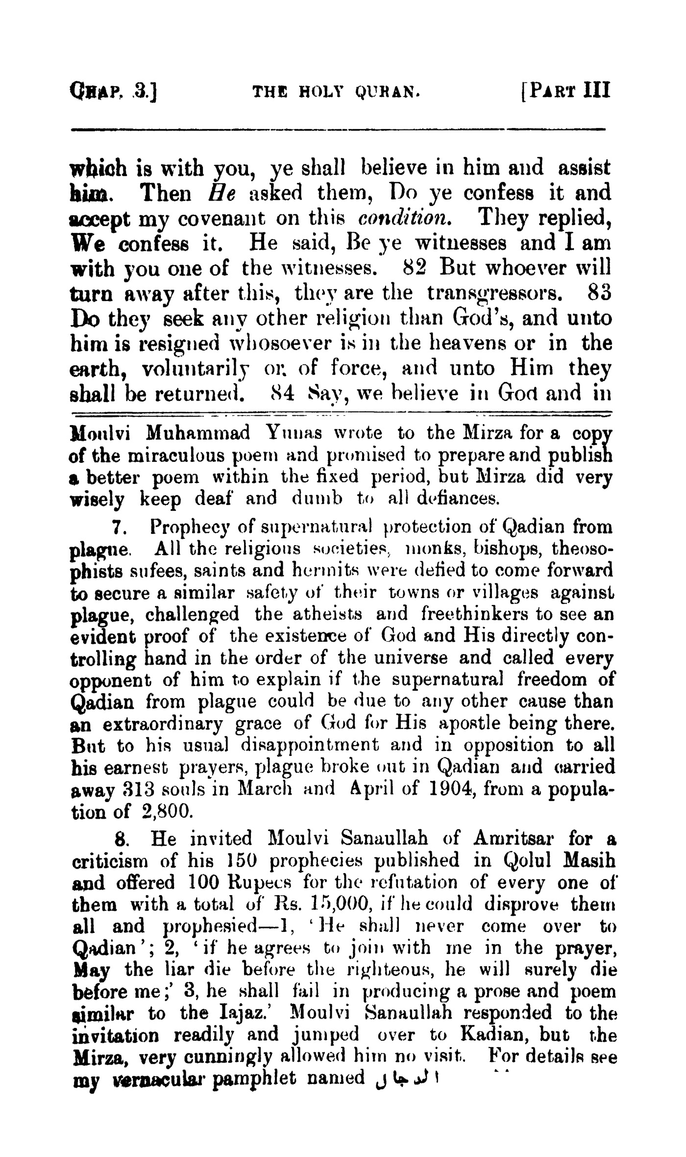 Mohammad Khan, The Holy Qurán. With Short Notes. Based on the Holy Quran, or the Authentic Traditions of the Prophet, or the Old and New Testaments or Scientifics Truths. All fictitious romance, questionable history, and disputed theories have been carefully avoided,