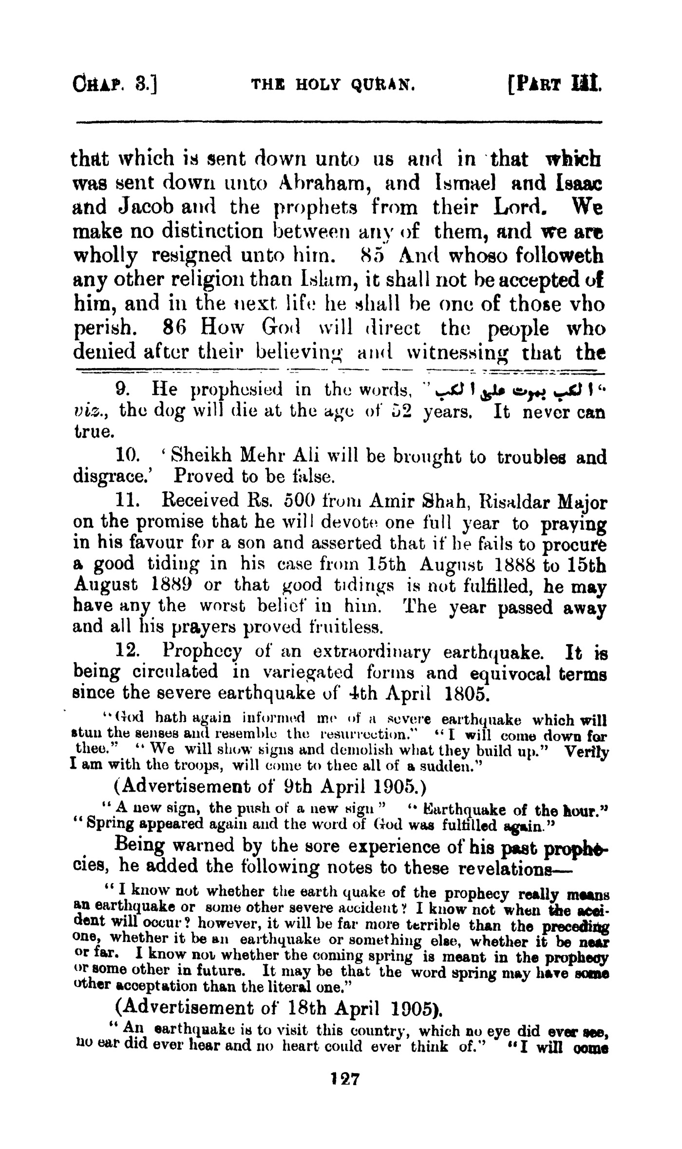 Mohammad Khan, The Holy Qurán. With Short Notes. Based on the Holy Quran, or the Authentic Traditions of the Prophet, or the Old and New Testaments or Scientifics Truths. All fictitious romance, questionable history, and disputed theories have been carefully avoided (1905)