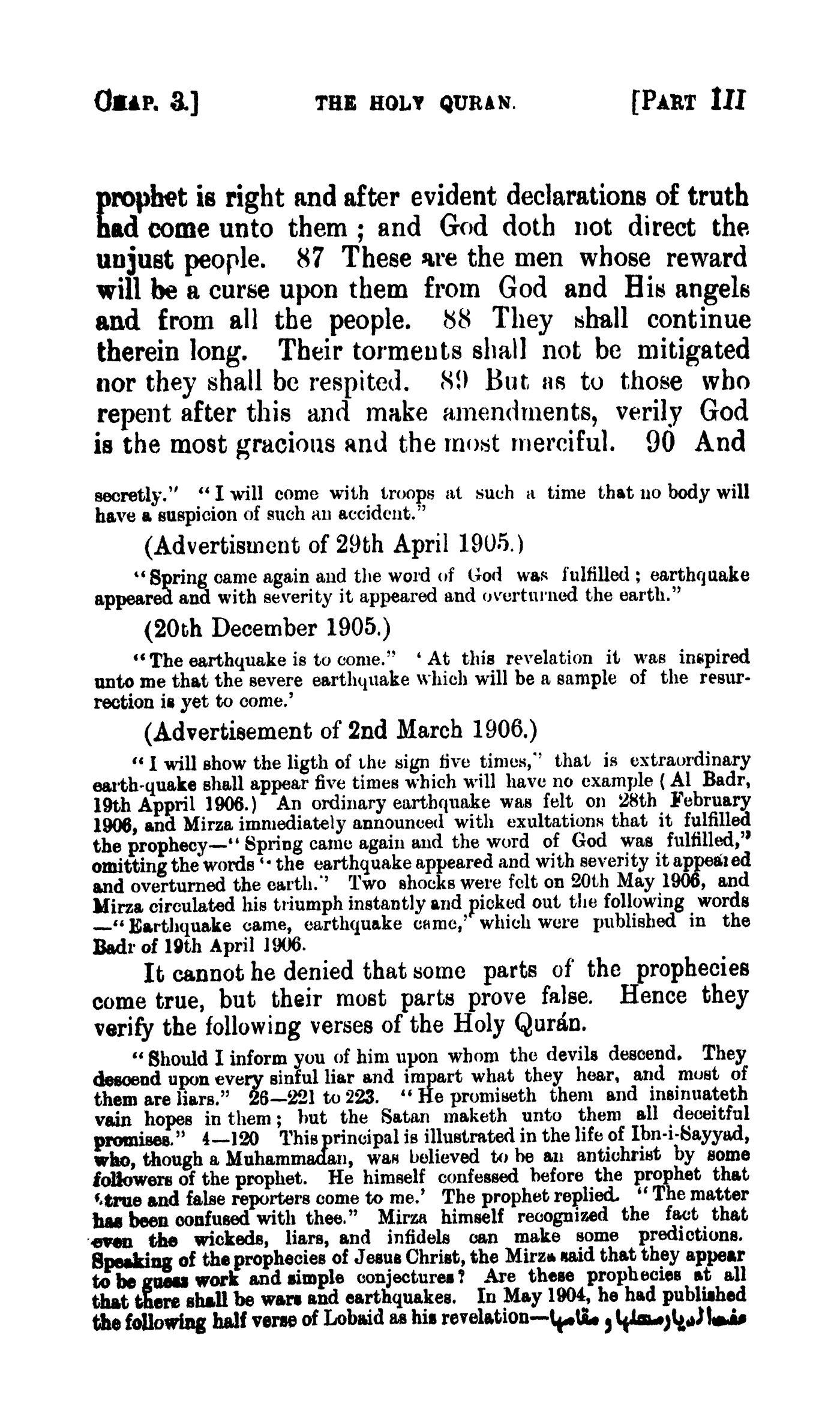 Mohammad Khan, The Holy Qurán. With Short Notes. Based on the Holy Quran, or the Authentic Traditions of the Prophet, or the Old and New Testaments or Scientifics Truths. All fictitious romance, questionable history, and disputed theories have been carefully avoided (1905)