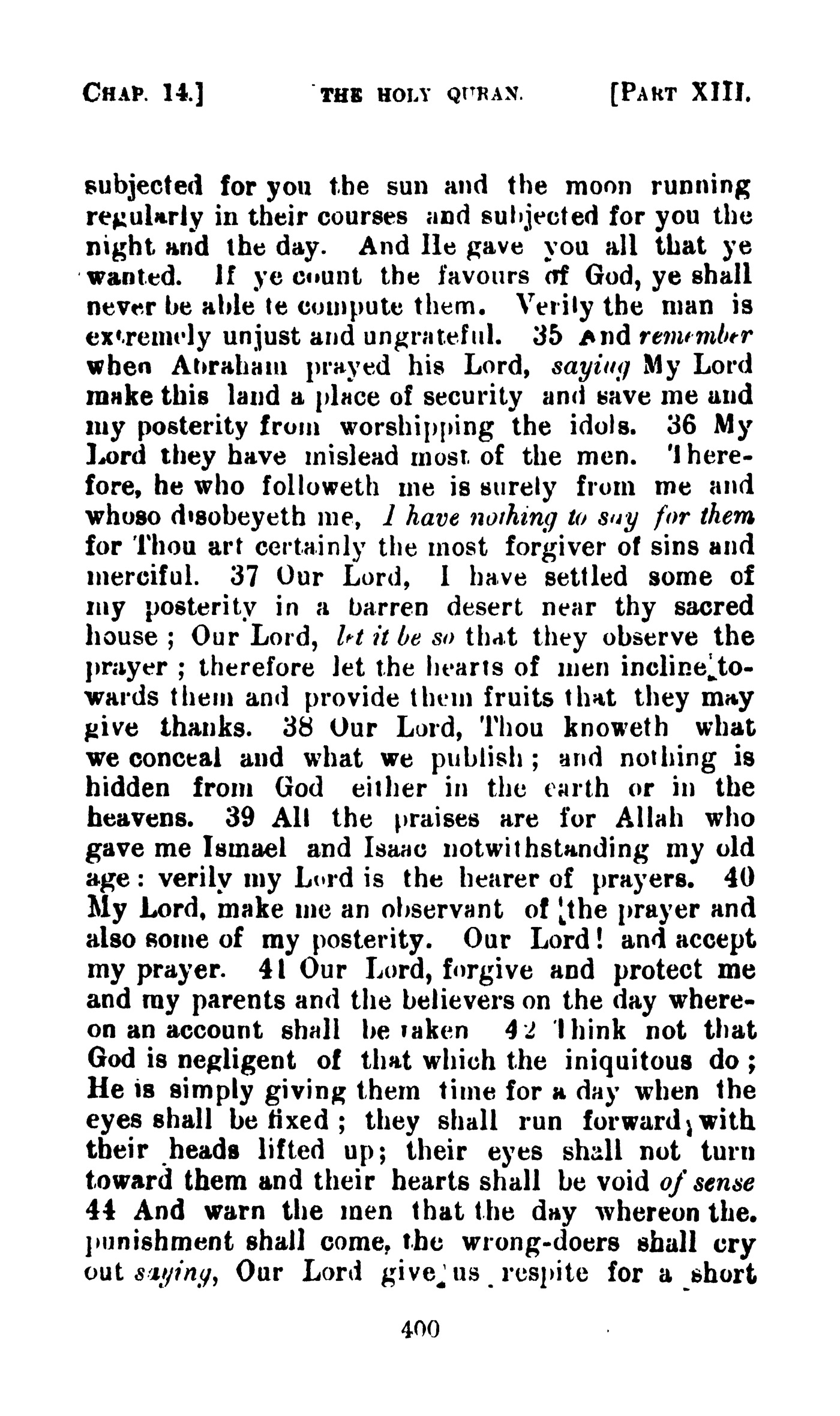 Mohammad Khan, The Holy Qurán. With Short Notes. Based on the Holy Quran, or the Authentic Traditions of the Prophet, or the Old and New Testaments or Scientifics Truths. All fictitious romance, questionable history, and disputed theories have been carefully avoided (1905)