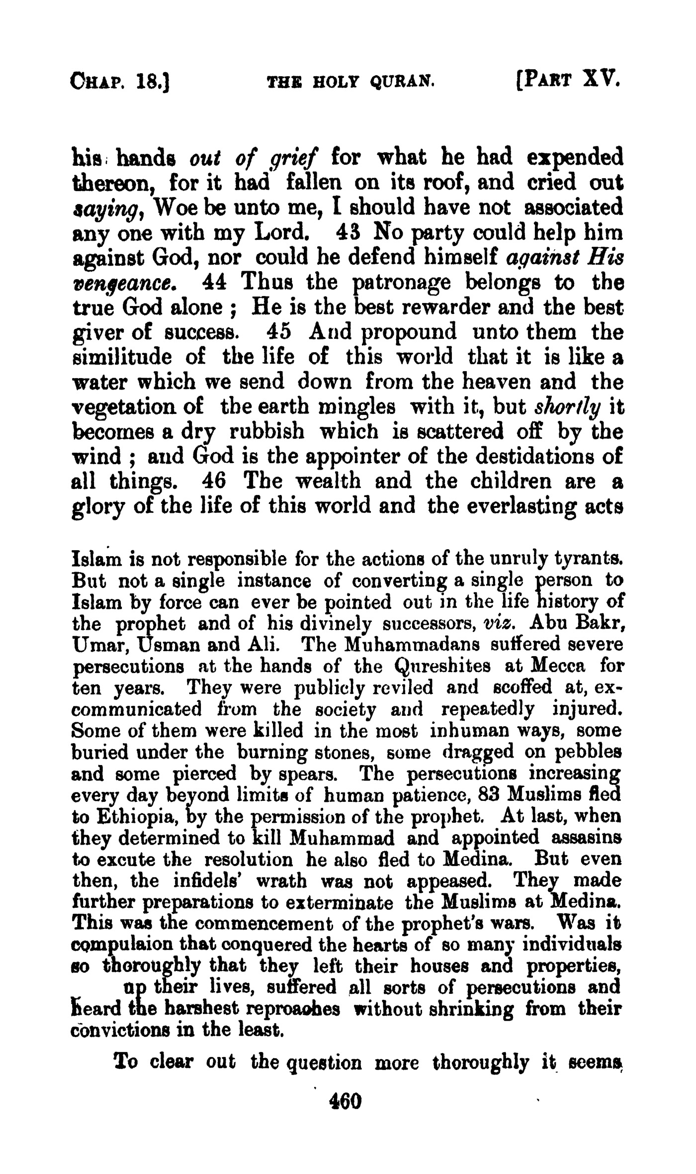 Mohammad Khan, The Holy Qurán. With Short Notes. Based on the Holy Quran, or the Authentic Traditions of the Prophet, or the Old and New Testaments or Scientifics Truths. All fictitious romance, questionable history, and disputed theories have been carefully avoided,