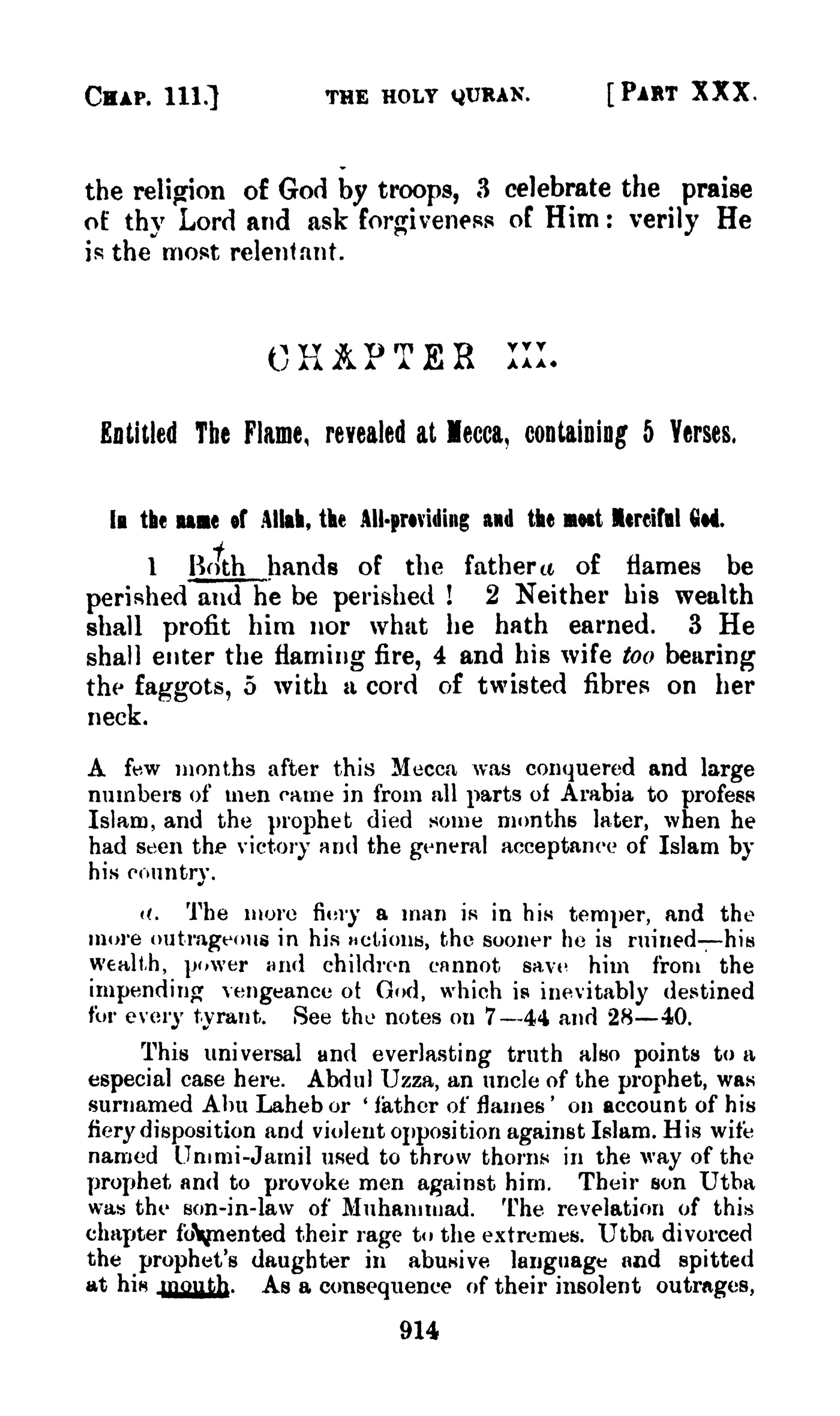 Mohammad Khan, The Holy Qurán. With Short Notes. Based on the Holy Quran, or the Authentic Traditions of the Prophet, or the Old and New Testaments or Scientifics Truths. All fictitious romance, questionable history, and disputed theories have been carefully avoided (1905)