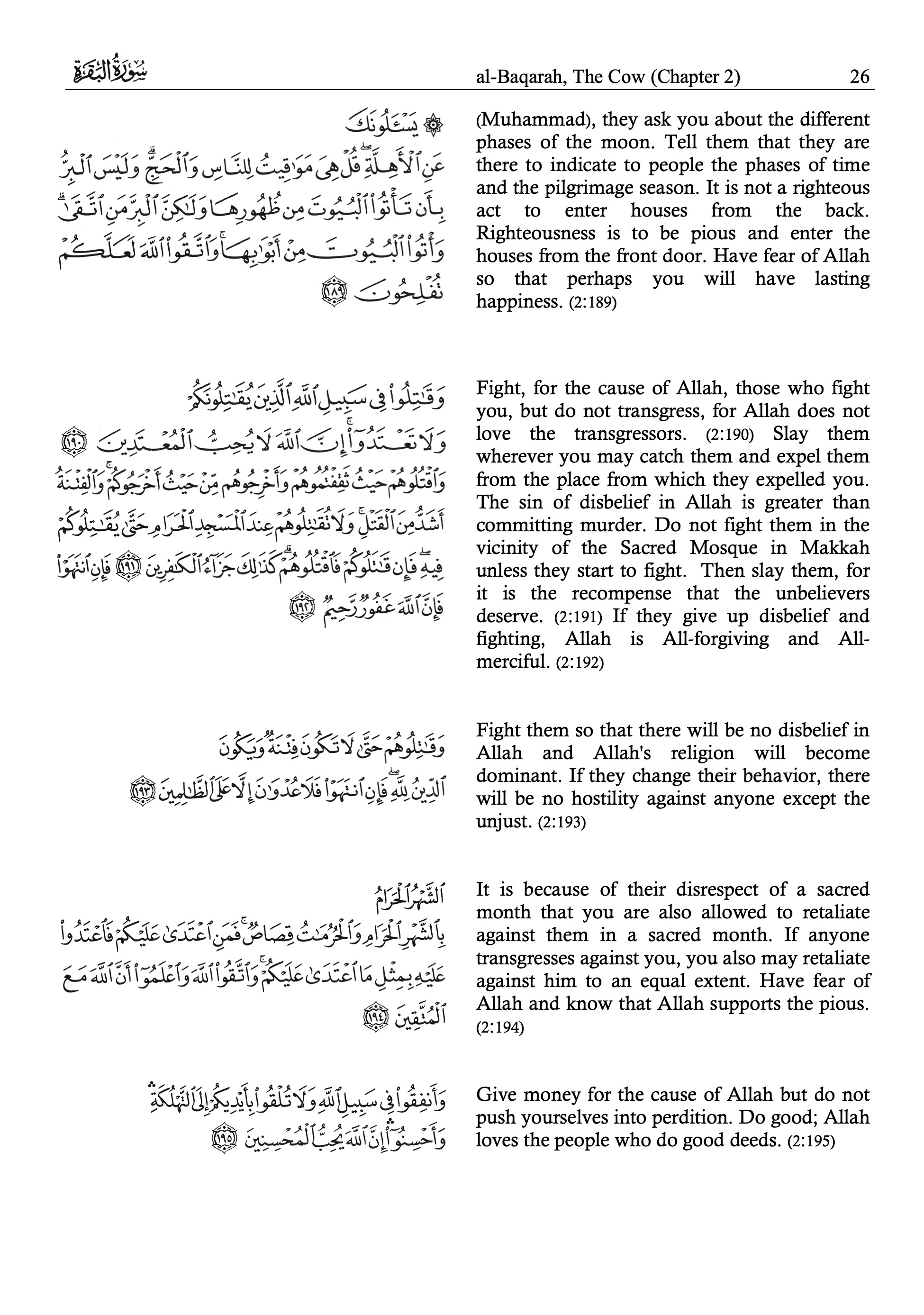 Muhammad Sarwar, The Holy Quran; Arabic Text and English Translation,
