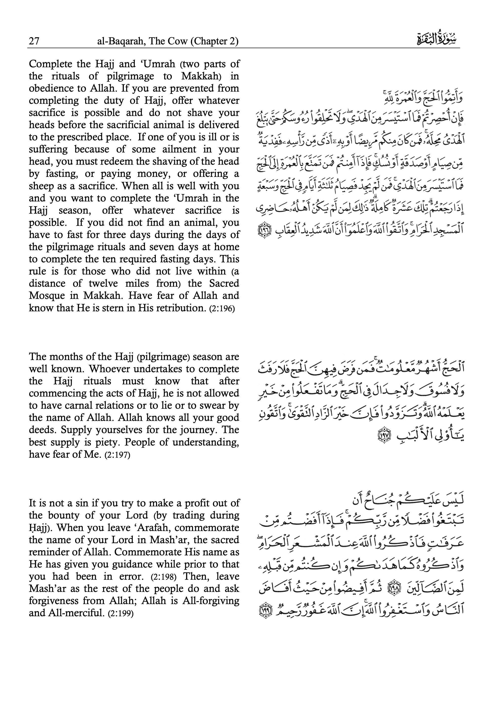 Muhammad Sarwar, The Holy Quran; Arabic Text and English Translation,