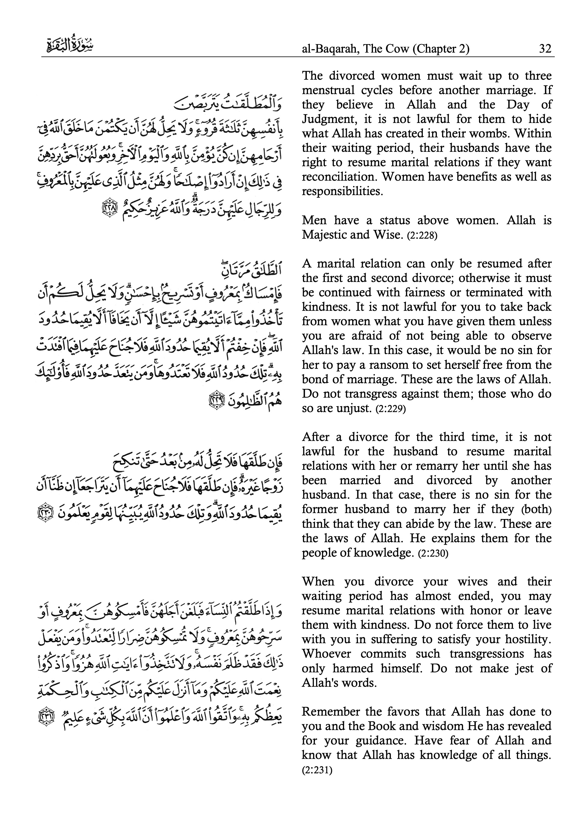 Muhammad Sarwar, The Holy Quran; Arabic Text and English Translation,