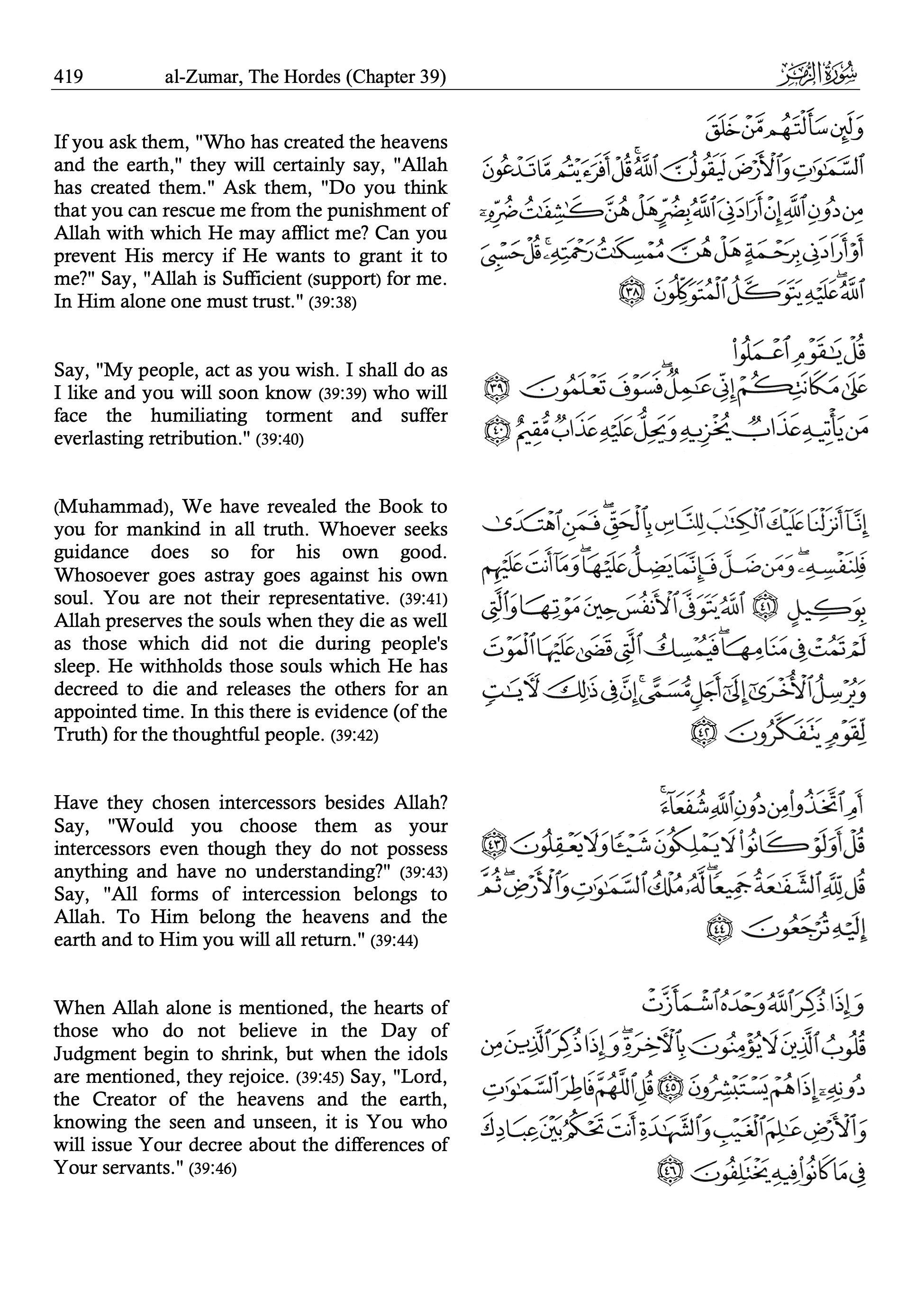 Muhammad Sarwar, The Holy Quran; Arabic Text and English Translation,