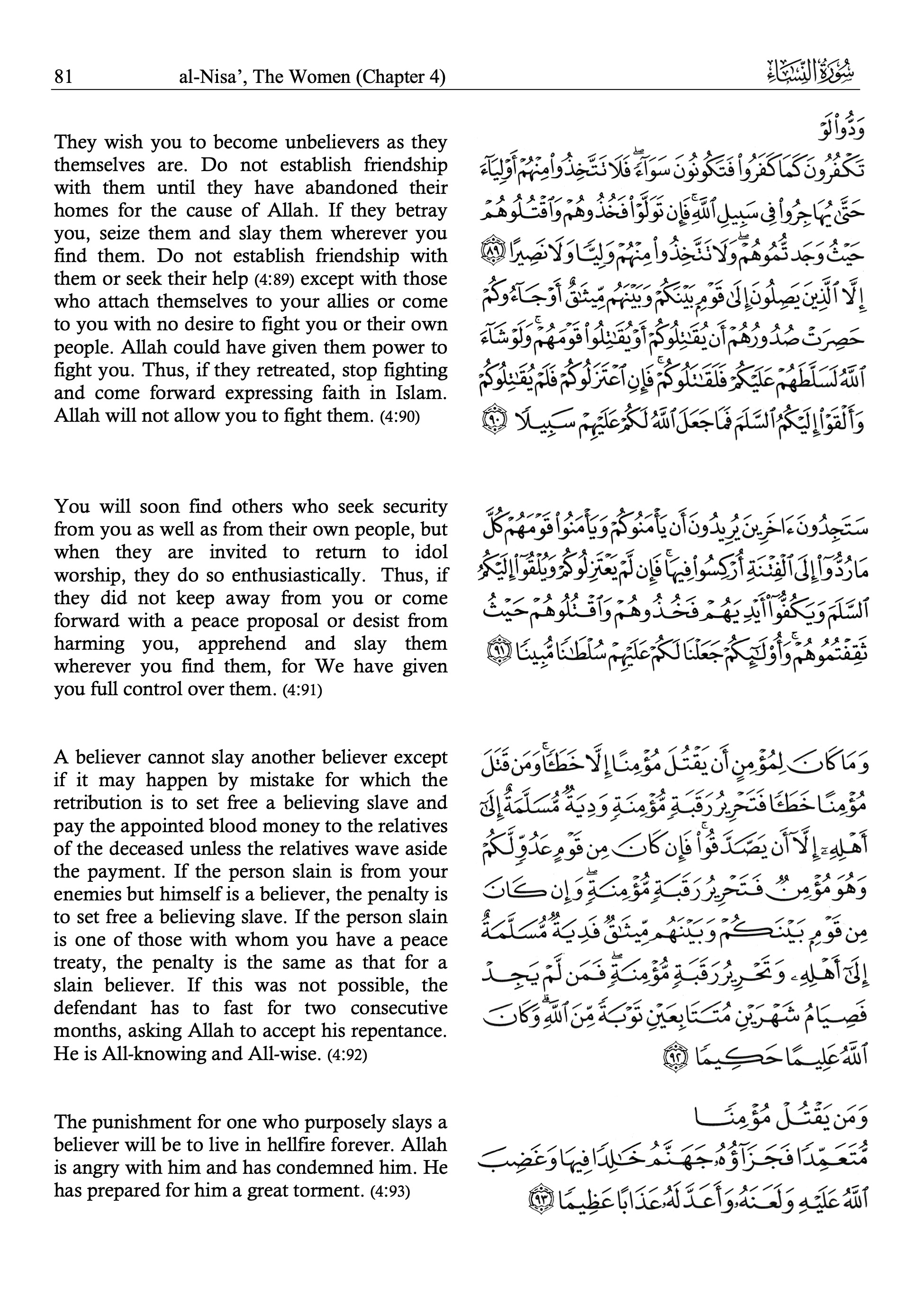 Muhammad Sarwar, The Holy Quran; Arabic Text and English Translation,